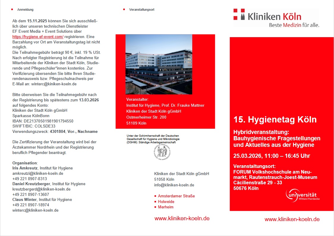 (Foto: Veranstaltungsflyer)Hybridveranstaltung: Bauhygienische Fragestellungenund Aktuelles aus der Hygiene. Die Veranstaltungen findet am 25.03.2026, 11:00 – 16:45 Uhr im